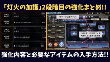 v4.0.0より追加された「灯火の加護」の新強化内容やおすすめの強化、強化に必要なアイテムの入手方法をまとめたので、ぜひ参考にしてみてください