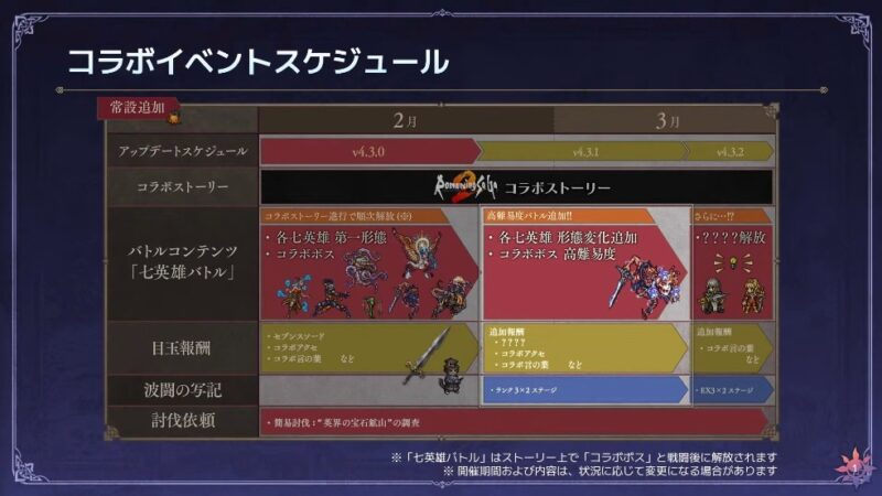 まずは、ロマサガ2コラボのバトルコンテンツについての追加情報が発表されました