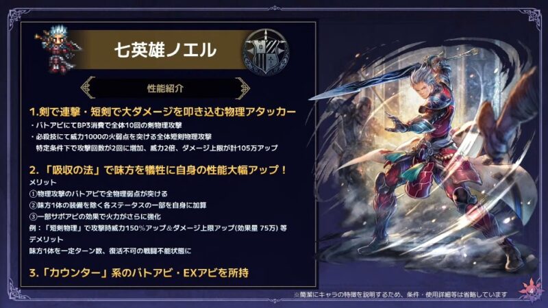ノエルは、剣と短剣による攻撃で高火力が出せるアタッカーです