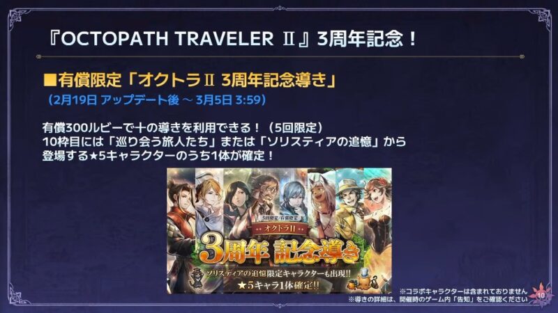 2026/2/18に配信された第39回オクトラジオ(youtubeにて配信)でのゲーム内情報をまとめました