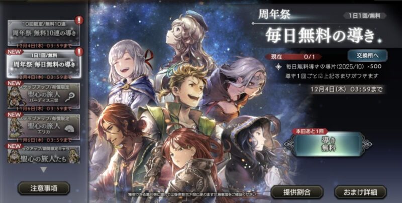 まずは「5周年祭、毎日無料の導き」を行いましょう