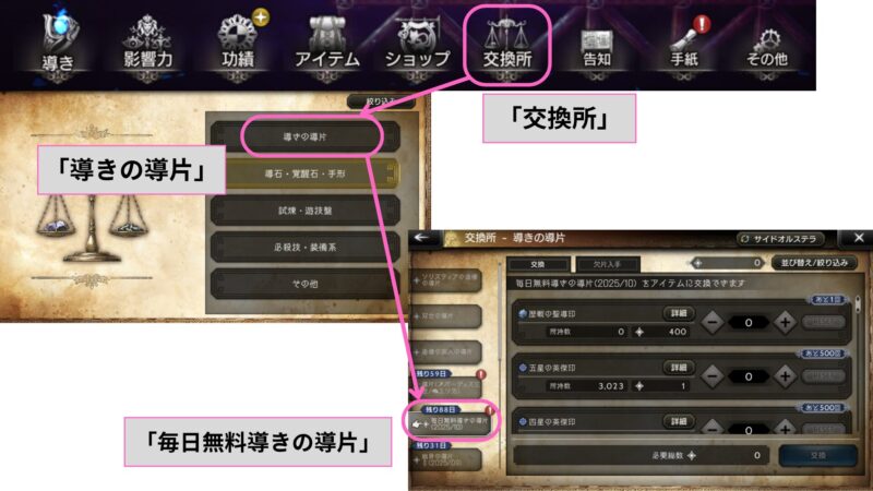 導きを行わなかった日は導片が貰えないので毎日忘れず導きましょう