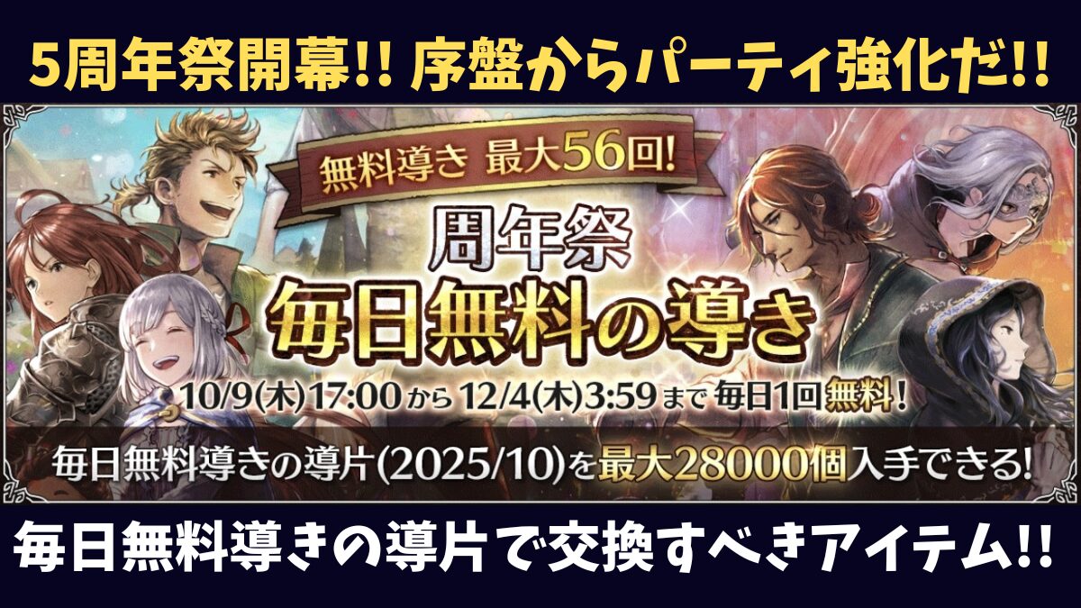 まずは「5周年祭、毎日無料の導き」を行いましょう