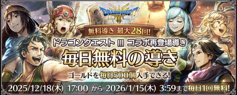 ~2026/1/15(木)3:59までの期間、「ドラクエⅢコラボイベント」が復刻開催されています!