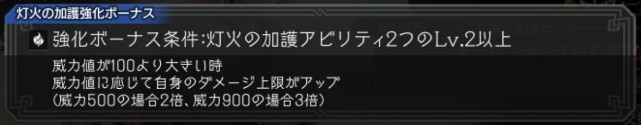 灯火の加護を強化すると、さらにダメージ上限を伸ばせます
