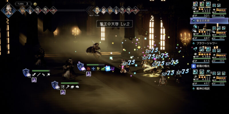 3回発動により後衛のSPを計150消耗するので、一応技を使う前にSPが足りているか確認しましょう