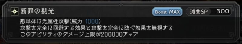 敵のギミックで連撃耐性がある場合は、ダメージ上限20万付の単発攻撃技、バトアビ【断罪の剔光】で火力を出す方がダメージが大きくなる場合があるので使い分けていくと良いと思います。