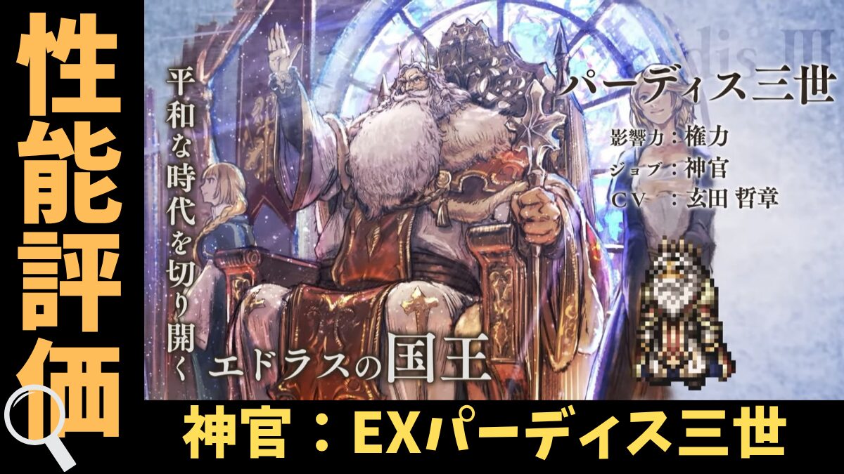 EXパーディス三世は、味方へのバフを入れながら攻撃したり、敵にデバフ付きの攻撃ができる性能です