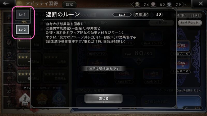 これで必殺Lv.が一目瞭然ですね!(ついでにjpやTPも確認できる)