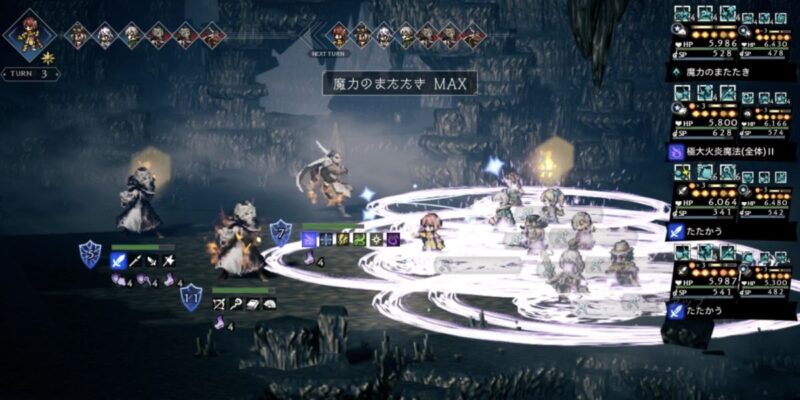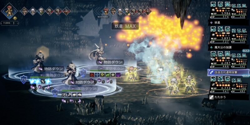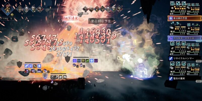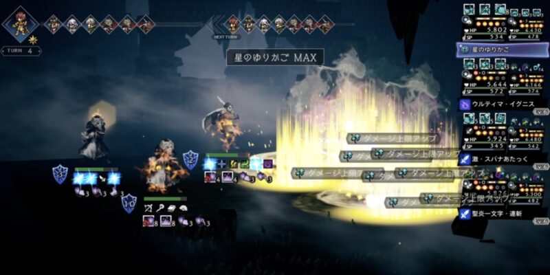 ちなみにこのターン、サポアビ【無辺際の星食】により、行動選択時にBP5溜まっている味方は、攻撃時に威力アップ75%が発動します。もう一度高火力技を叩き込んでいきましょう