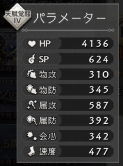 属攻:587は、そこそこ高いかなという感じで、やはりアタッカーほどのインパクトはなし