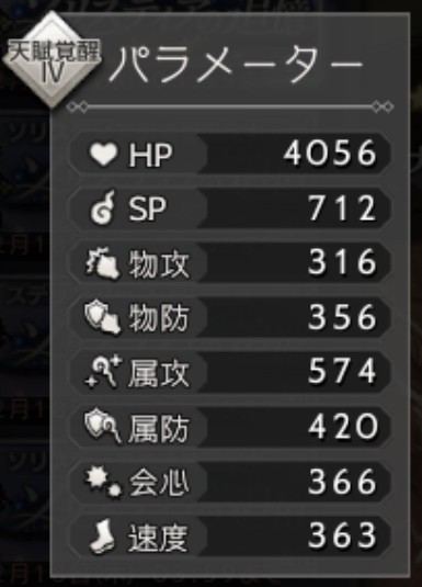 ジョブ「学者」にしてはHPも高め。HPバリア系の技は、自身の最大HPの割合に応じたバリア値が付与されるため良ステータスと言えます