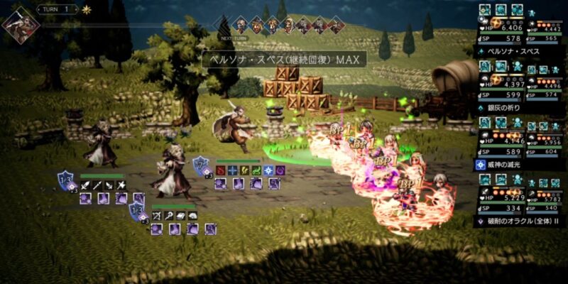 初動で使ったバトアビ【ペルソナ・スペス】によるBP1回復が入るので、