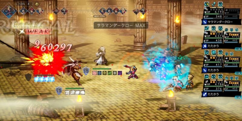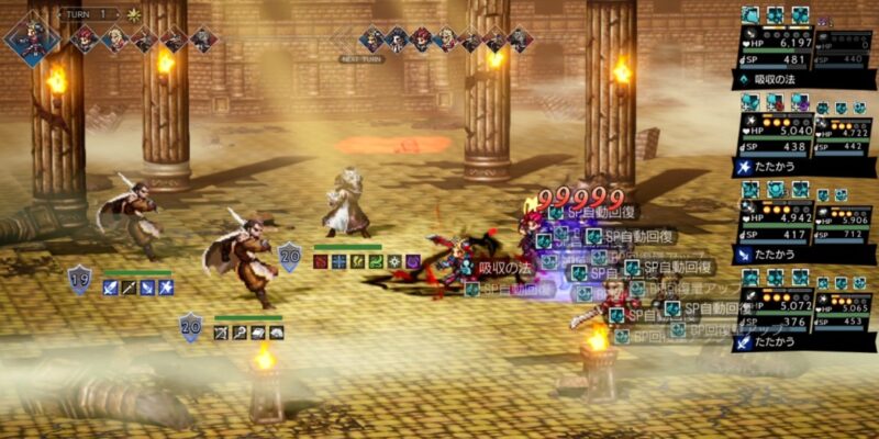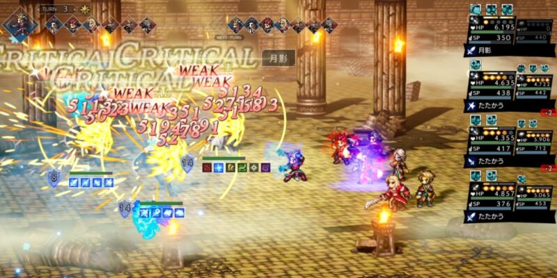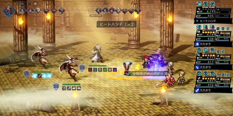 「やらせていただきます」はノエルの台詞なので使わせていただいてます。簡単に高ダメージが出せるアタッカーというだけでなく、パーティ全体への永続的なBP自動回復ができるのも優秀。新規さんもすでにお気づきかもしれませんが、オクトラの戦闘においてBP管理は超重要(笑)。かなり戦いやすくなるはず。全物理弱点を突ける汎用性の高さも含め超おすすめのキャラです