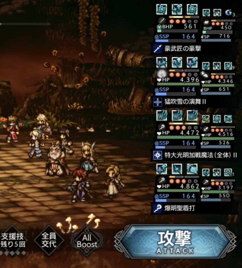 サポアビ強化により「戦闘開始時SPストック」を味方に付与できるようになったので、SP枯渇問題が解決しやすくなり、快適な旅ができるようになりました