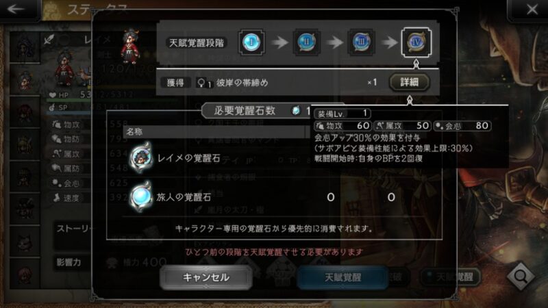 覚醒石を全て入手すれば、4凸+必殺凸までいけるので、パラメーターがより強力になる他、天賦覚醒アクセも獲得できます!
