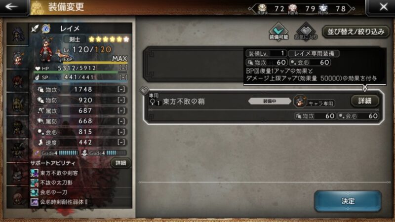 というわけで今回は、剣士レイメの育成方法の紹介や、天賦覚醒アクセ/専用アクセの性能を解説します