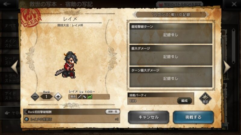 宿敵の写記の「レイメ」難易度EX1までクリアで4凸、