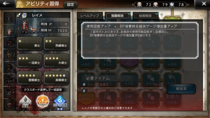 クラスボードを全て解放済みなら、戦闘開始時のBPが5になります