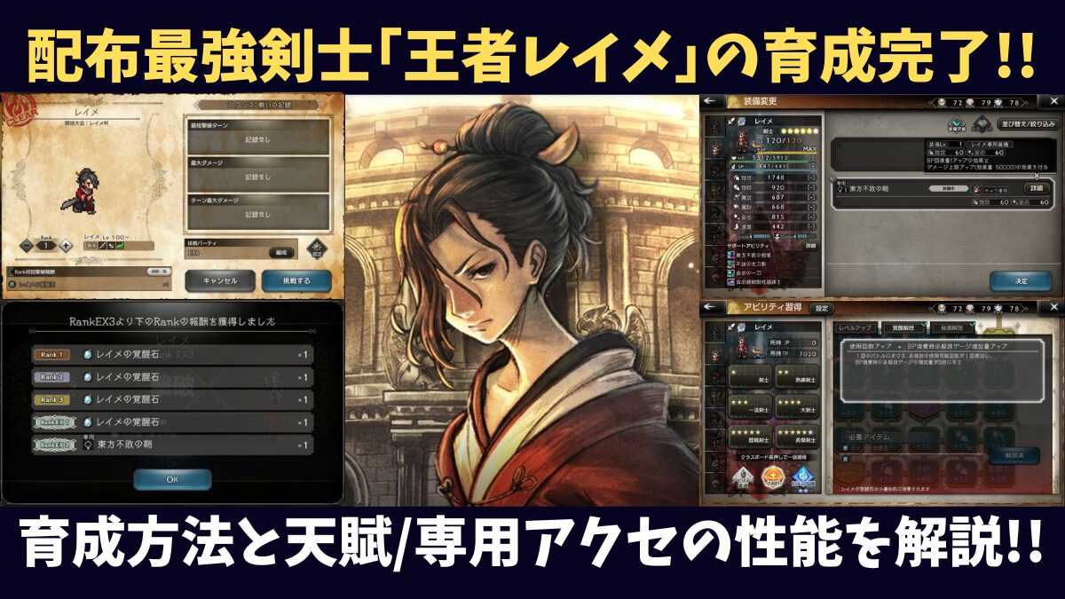 というわけで今回は、剣士レイメの育成方法の紹介や、天賦覚醒アクセ/専用アクセの性能を解説します