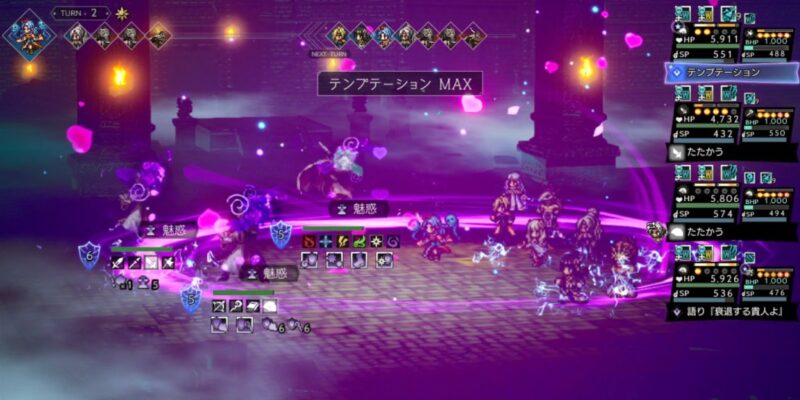 極大確率で魅惑の状態異常を付与(2ターン)