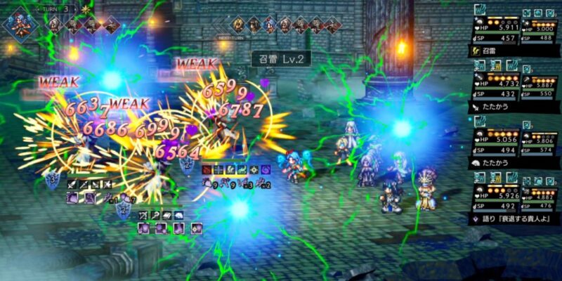 敵全体に3回の雷属性攻撃(威力 65)