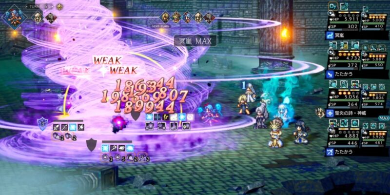 敵の弱点を突ける攻撃時、七英雄ロックブーケが追撃する効果を付与