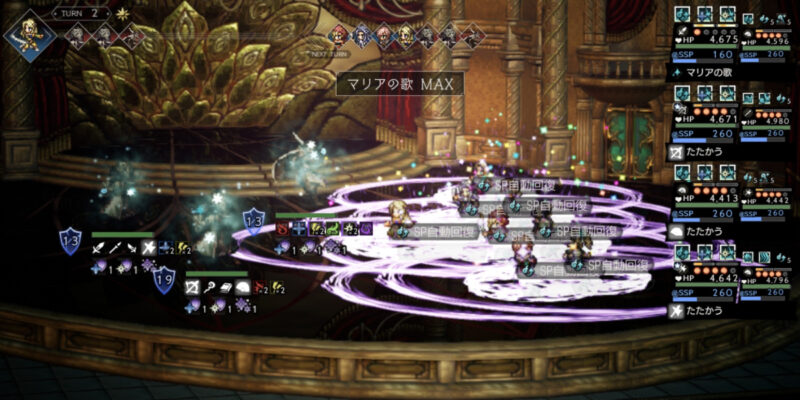 長期戦ではSPが枯渇するケースもあるので、継続的に味方のSPを回復できるのは便利です