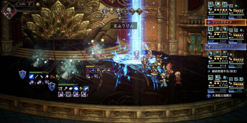 まふうけんで敵の攻撃を防ぎ、SPストックにより「人造魔導士」状態で攻撃すると高火力が出せます