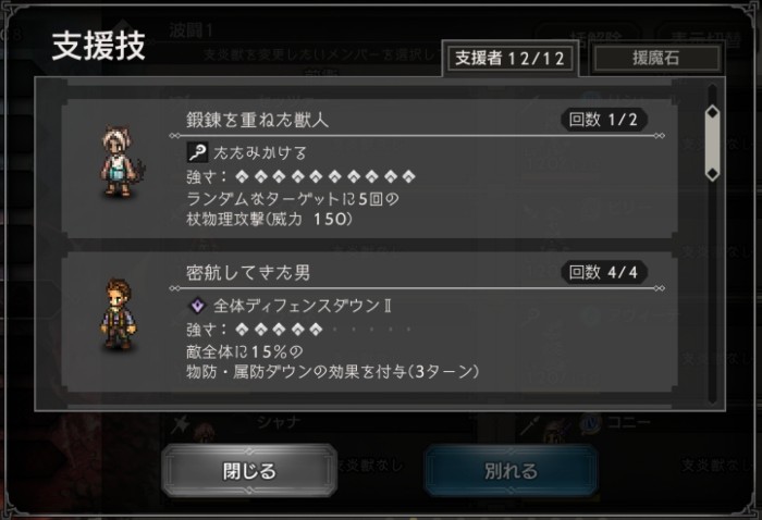 ②戦闘中に使用できる支援回数は5回までですが、この「支援回数」を消費せず支援技が使えます