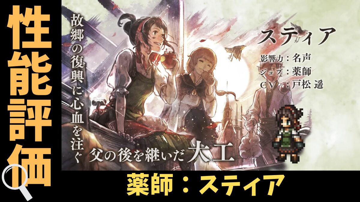 立ち回り例のように、敵ブレイクまでに応援ptが無理なく9pt溜めれるので扱いやすい。支援者を効率的に使えるところも唯一無二の能力で価値が高い。またオクトラの戦闘において、「状態異常対策」はかなり重要だと思うので、そこを支援者呼びだけでついでに回復できるのは超強い。ただ支援者を絡めた戦いはややトリッキーな感じもあるので、新規さんにはおすすめできないかも。あらゆる手段を駆使しながらの工夫した戦いが好きな人にはおすすめです