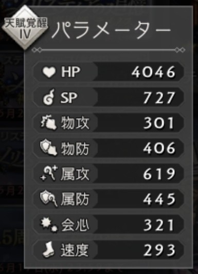 属攻:619は、かなり高めなので火力が出しやすい値です