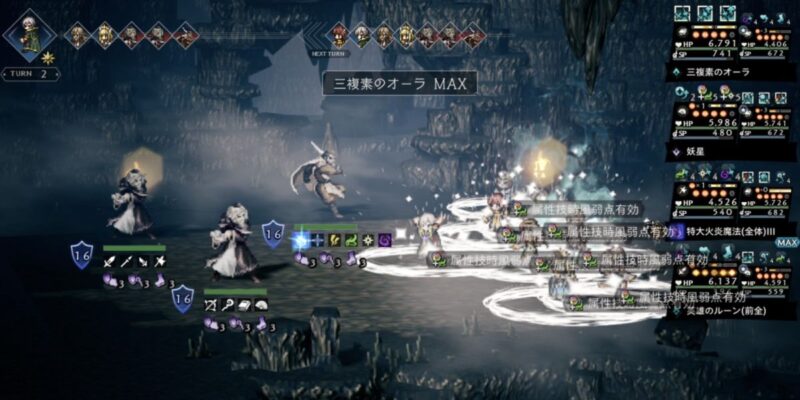 敵の弱点を突く攻撃にはダメージアップ30%が乗り、