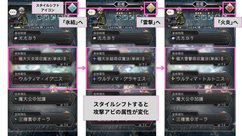 - スタイルシフトで火/氷/雷を切り替える